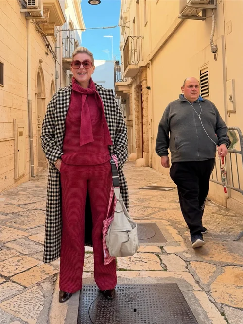 The evolution continued in 2018 with the birth of Kitchen Kouture by PALLA VIENNA. Working with traditional linen mill Vieböck, Alexandra transformed classic kitchen-check dish towel fabrics into garments—blurring the line between culinary heritage and contemporary fashion. Her cookbooks, *Put a Lot of Love in It and My Summer Retreat Kitchen, further reflect this holistic approach, pairing recipes with atmosphere, design, and personal storytelling.